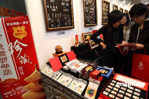 圖為北京奧運特許商品展示會現(xiàn)場。
