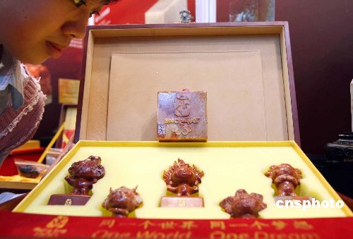 圖為壽山石福娃亮相展會。