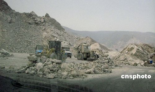 圖為該山溝附近工地停工待命。