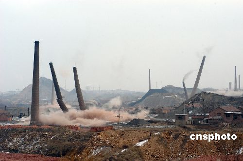 加大節(jié)能減排力度 濰坊同時(shí)爆破27根煙囪