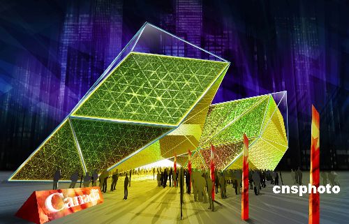 一月二十二日,加拿大政府在上海正式與中方簽約,參展二0一0年上海世博會,并同步公布加拿大館創(chuàng)意設(shè)計方案。上海世博會加拿大館的主題為“充滿生機的宜居住城市:包容性、可持續(xù)發(fā)展與創(chuàng)造性”。該館位于黃浦江東側(cè)的C片區(qū),占地六千平方米。針對參展上海世博會,加拿大政府的總預(yù)算將達(dá)四千五百萬加元。效果圖上的加拿大館宛如“綠寶石”。中新社發(fā) 世博局 供圖