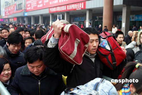 一月二十三日,在河南鄭州火車站進站口,提著大小包裹的打工人員秩序進站。鄭州火車站春運第一天,三日內(nèi)的車票全部售完,作為中國鐵路大樞紐的鄭州,已提前迎來客流高峰。中新社發(fā) 慎重 攝