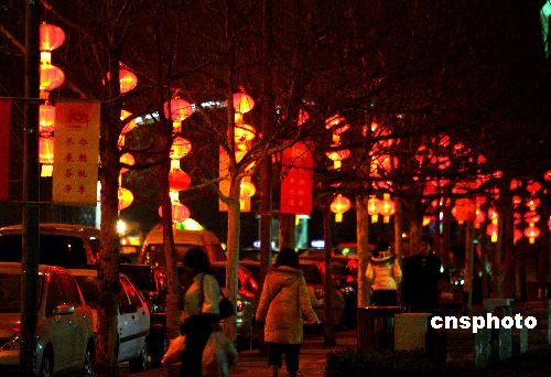 鼠年新春將至,北京一些生活小區(qū)張燈結(jié)彩,一派節(jié)日氣氛。隨著北京現(xiàn)代城市建設(shè)的發(fā)展,許多平房四合院逐漸被現(xiàn)代化的樓宇生活小區(qū)取代,每逢節(jié)日喜慶時節(jié),物業(yè)公司逐漸承擔(dān)起烘托節(jié)日氣氛的義務(wù)。中新社發(fā) 宋吉河 攝