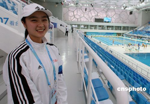 圖:北京大學生志愿者在“水立方”上崗