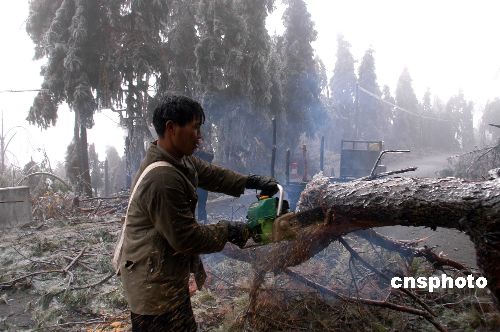 連日來(lái),粵北始興縣持續(xù)雨雪及低溫冰凍天氣,造成該縣大片竹木被積雪壓斷,初步統(tǒng)計(jì)嚴(yán)重受災(zāi)山林面積近100萬(wàn)畝。目前,該縣已派出工作組趕赴災(zāi)區(qū),查看災(zāi)情,慰問(wèn)災(zāi)民,組織群眾開展救災(zāi)工作。中新社發(fā) 馮昶 攝