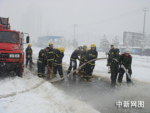 圖:杭州消防官兵積極抗擊雪災(zāi)