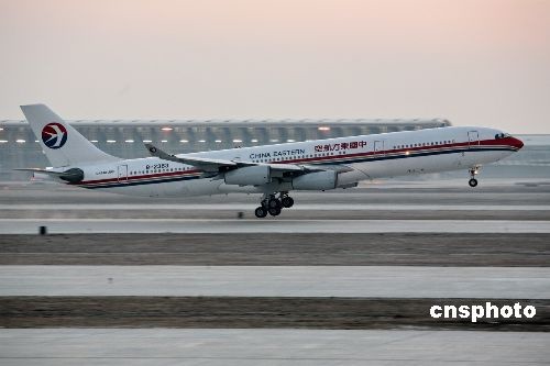 二月十九日清晨,中國東方航空公司的一架空客A三四○-三○○大型客機(jī)在上海浦東國際機(jī)場第三跑道試飛成功,這標(biāo)志著歷時(shí)近兩年建設(shè)的浦東機(jī)場第三跑道工程,已全面具備了飛行營運(yùn)條件。據(jù)悉,浦東國際機(jī)場第三跑道將于今年三月正式啟用,屆時(shí)將可起降目前全球最大型的A三八○客機(jī)。中新社發(fā) ;萦 攝