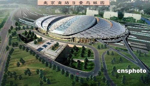 北京南站計(jì)劃于4月25日進(jìn)入機(jī)電設(shè)備調(diào)試,6月26日基本完工全面進(jìn)入試運(yùn)行,8月1日開通運(yùn)營。圖為北京南站效果圖。中新社發(fā) 張宇 攝