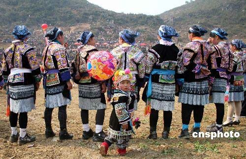 3月2日,2008貴州省開陽縣高寨苗族布依族鄉(xiāng)平寨斗牛節(jié)揭幕。來自十里八鄉(xiāng)的苗族、布依族同胞身著節(jié)日盛裝,聚集平寨村天然的斗牛場,吹起蘆笙,載歌載舞,一睹斗牛賽、斗雞、撥河、苗族舞蹈、刺繡、紡織等比賽的精彩表演。中新社發(fā) pengnian 攝