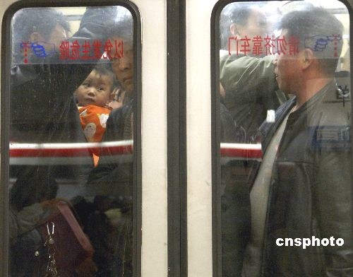 3月10日,北京地鐵里擁擠的人群。根據(jù)統(tǒng)計,北京地鐵在2月29日創(chuàng)下日客運(yùn)量351萬人次的歷史紀(jì)錄。3月7日,北京地鐵全網(wǎng)客運(yùn)量再創(chuàng)新高,達(dá)到359.7萬人次。其中地鐵5號線、13號線、八通線也同時創(chuàng)下各自歷史新高。中新社發(fā) 張朋 攝