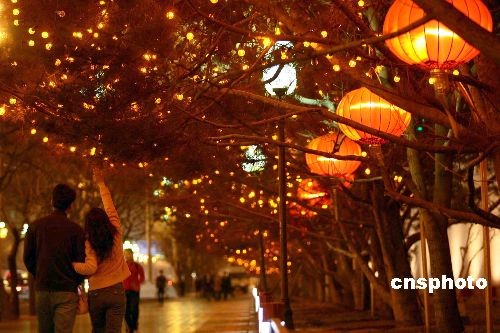 圖:北京長安街紅燈高掛慶兩會(huì)