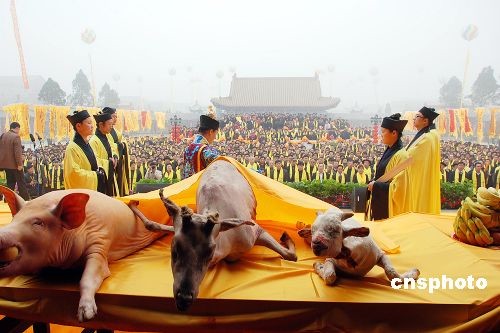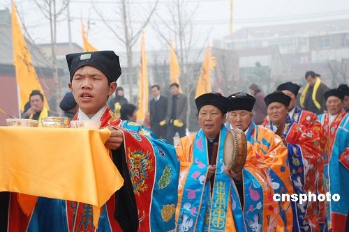 三月二十二日,在老子故里河南省鹿邑縣明道宮玄元殿前,當(dāng)?shù)卣e行盛大的公祭大典。當(dāng)日,(農(nóng)歷二月十五日)中國偉大的思想家、哲學(xué)家、道家學(xué)派創(chuàng)始人老子誕辰二千五百七十九周年。中新社發(fā) 李志全 攝