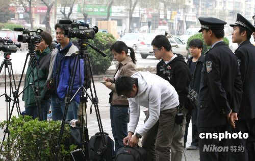4月11日,天津市第二中級(jí)人民法院開(kāi)庭對(duì)原中共上海市委書(shū)記陳良宇做一審判決。清晨開(kāi)始,就有包括香港媒體在內(nèi)的多家媒體記者聚集在天津二中院附近進(jìn)行跟蹤報(bào)道。中新社發(fā) 齊天 攝