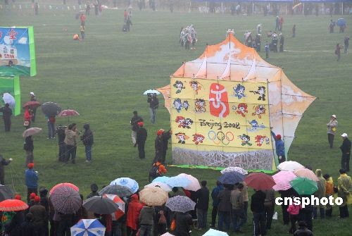 圖:濰坊萬(wàn)人春雨中放風(fēng)箏迎奧運(yùn)