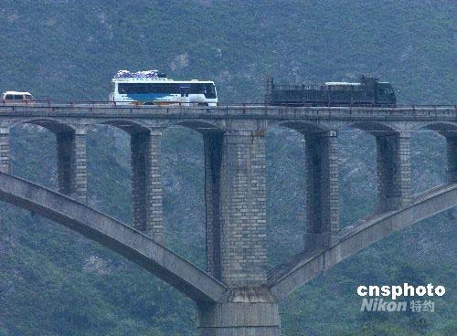 汶川縣位于四川省西北部,阿壩州境東南部的岷江兩岸,地質(zhì)構(gòu)造復雜,有“川西鎖鑰”和“西羌門戶”之稱。通往汶川縣的岷江橋可謂生命橋。中新社發(fā) 賈國榮 攝