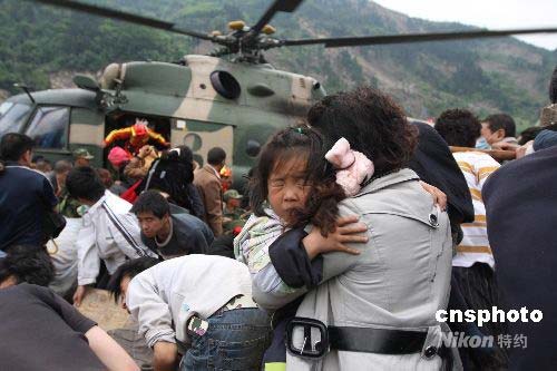 圖:軍用直升機直落映秀鎮(zhèn)搶救災(zāi)民