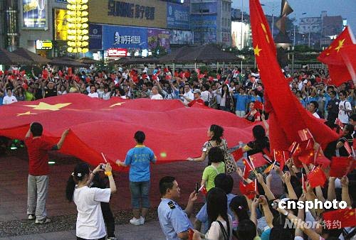 5月16日,湖南長(zhǎng)沙市紅十字會(huì)、湖南公益聯(lián)盟網(wǎng)共同發(fā)起的“國(guó)旗揮舞力量 湖南鼓舞汶川”大型公益活動(dòng)在長(zhǎng)沙市舉行。一面一百平米的國(guó)旗在人群中傳遞前行,國(guó)旗激起了人們心底的愛(ài)國(guó)熱情,市民紛紛掏出善款捐獻(xiàn)災(zāi)區(qū)。中新社發(fā) 張家根 攝