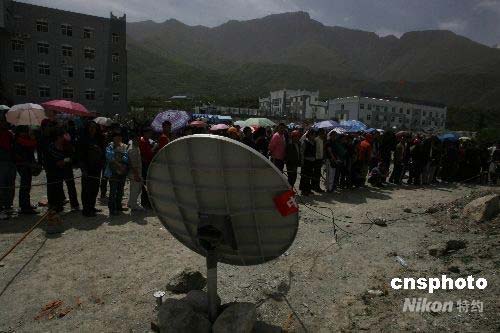 圖:茂縣開(kāi)通首臺(tái)衛(wèi)星電話(huà)千人排隊(duì)等候