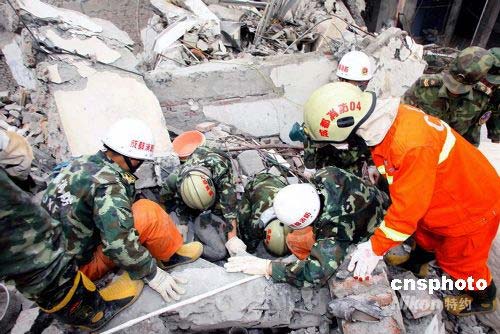 圖:武警消防官兵連續(xù)奮戰(zhàn)搜救生存者