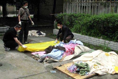 2008年5月16日,四川都江堰市蒲陽路附近一個(gè)小區(qū),死者家屬在肅穆氣氛中為死者準(zhǔn)備出殯事宜,死亡者未能避開5月12日中國汶川大地這場劫難,其遺體剛從地震廢墟中刨出。中新社發(fā) 鄒憲 攝