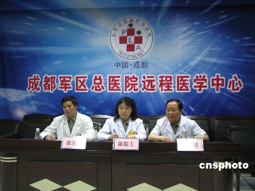5月18日上午,由解放軍總后勤部地震衛(wèi)勤總指揮部牽頭,解放軍301總醫(yī)院赴成都軍區(qū)總醫(yī)院醫(yī)療隊(duì)、成都軍區(qū)總醫(yī)院、南京軍區(qū)總醫(yī)院、西京醫(yī)院的四位腎科、胃腸外科院士及燒傷專家、急診專家在不同的地點(diǎn)共同對由第四軍醫(yī)大學(xué)赴四川安縣醫(yī)療隊(duì)救治的在地震中被埋124小時(shí)的一名21歲男性傷員進(jìn)行遠(yuǎn)程會(huì)診。通過在電視屏幕上對傷員病情的了解、對傷情的查看及傷員雙下肢功能的檢查,專家們提出了治療方案,以使傷者能夠盡快盡好地得到最有效的治療。
