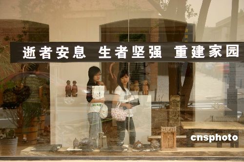 5月20日,北京市798藝術園區(qū)內的部分商家為了表達自己對四川災區(qū)的關切之情,在店鋪的門口掛上了賑災標語。