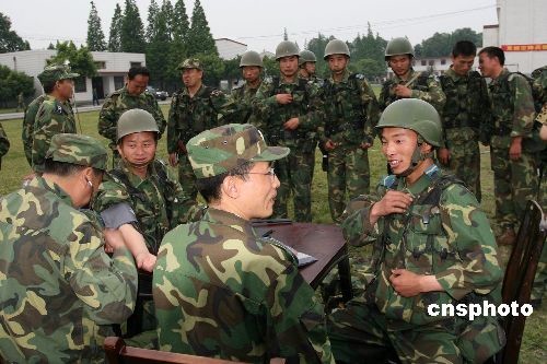 5月20日晚,輾轉(zhuǎn)奮戰(zhàn)在四川震中災(zāi)區(qū)地帶的15名中國空降兵返回成都某軍用機(jī)場?战当巢300余名官兵在機(jī)場歡迎15勇士凱旋。完成第一輪抗震救災(zāi)任務(wù)的15勇士原地待命,隨時(shí)準(zhǔn)備執(zhí)行新的救災(zāi)任務(wù)。這15名空降兵自5月14日12時(shí)25分傘降震中地帶茂縣后,就擔(dān)負(fù)起了震中地帶通信聯(lián)絡(luò)、災(zāi)情勘察、情況上報(bào)等抗震救災(zāi)任務(wù)。圖為空降兵接受身體檢查。中新社發(fā) 孫久奎 攝