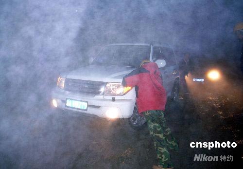 從5月21日晚至22日凌晨,中新社記者通過四川省雅安市的S210省際公路前往臥龍,海拔4000多米的夾金山頂峰被進(jìn)出汶川地震重災(zāi)區(qū)的大型貨車、救護(hù)車、轉(zhuǎn)移災(zāi)民車等運(yùn)輸車輛堵塞,采訪車多次深陷泥濘之中。由于目前通往汶川地震災(zāi)區(qū)的被毀公路在修復(fù)后極為脆弱,因此這條過去不起眼的公路成為連結(jié)成都與汶川的生命線。中新社發(fā) 任晨鳴 攝