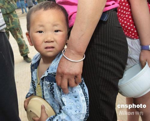 圖:四川震區(qū)排隊(duì)打飯的兒童