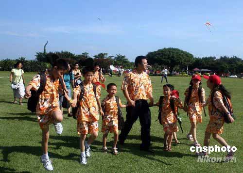 圖:首批九名四川災(zāi)區(qū)兒童愛心海南游