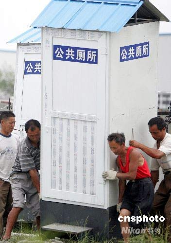 都江堰安置受災(zāi)民眾營修建清潔公共衛(wèi)生間