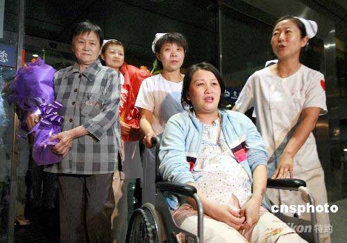 5月27日晚,四川大地震重災(zāi)區(qū)都江堰市被困50小時(shí)孕婦張小艷與父母乘飛機(jī)安全抵達(dá)烏魯木齊市,該市婦幼保健院派專人前往機(jī)場迎接,并將張小艷接入醫(yī)院免費(fèi)接生。據(jù)了解,地震發(fā)生時(shí),已有8個(gè)月身孕的張小艷和母親被掉落的天花板壓住被困50個(gè)小時(shí),救援人員發(fā)現(xiàn)后對其實(shí)施救援,母子平安奇跡般生還。中新社發(fā) 劉新 攝