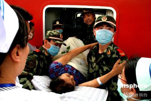 5月30日下午3時(shí)28分,運(yùn)載347名災(zāi)區(qū)傷員的“救33次”專列駛進(jìn)揚(yáng)州火車站。其中,188名傷員在揚(yáng)州火車站下,有70名將從揚(yáng)州轉(zhuǎn)運(yùn)到南京和鎮(zhèn)江治療。這是四川汶川地震后到達(dá)揚(yáng)州的首趟轉(zhuǎn)運(yùn)傷員專列,本次專列運(yùn)送的傷員中,年齡最大的李全正,九十三歲,來自都江堰,由女兒陪著,他將去南京接受治療。最小的趙世杰,十三個(gè)月,他是由爸爸陪護(hù)。八十歲以上的有十六人,二十多個(gè)傷員沒有家屬陪護(hù),當(dāng)?shù)刂驹刚唠S車為臨時(shí)家屬。