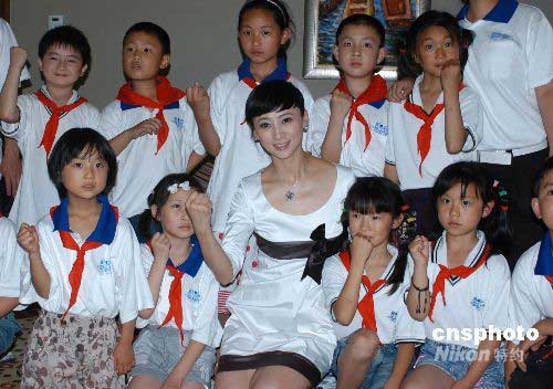 圖:港星翁虹三亞看望四川地震災區(qū)兒童