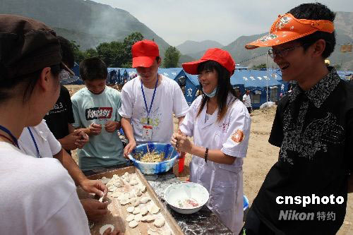 圖:北川受災(zāi)民眾包餃子慰問志愿者