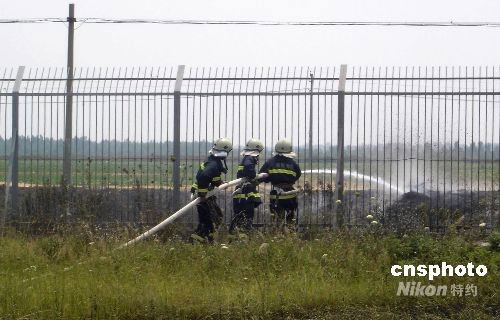 6月5日,湖北襄樊消防官兵緊急出動撲滅機場跑道大火。當天,襄樊機場飛行區(qū)因周邊農民焚燒麥秸,引起跑道一千多平方米的草坪失火,所幸當天該機場飛至廣州的航班已經(jīng)飛離機場,加之撲救及時,沒有造成嚴重后果。中新社發(fā) 楊勁松 攝