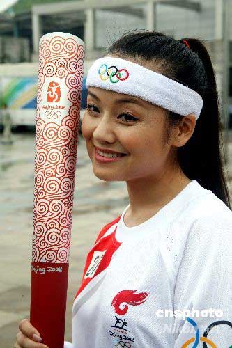 6月12日,著名苗族歌唱家阿幼朵跑完了第207棒奧運(yùn)火炬?zhèn)鬟f后興奮地讓記者給她拍張紀(jì)念照。中新社發(fā) 彭年 攝