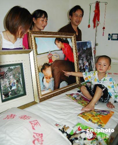 6月18日,蘇州蘇繡工藝美術(shù)大師濮鳳娟特地坐飛機(jī)前往西安唐都醫(yī)院將一幅高27厘米、寬20厘米的“敬禮娃娃”刺繡作品贈(zèng)送給小郎錚本人,令小郎錚以及親戚感動(dòng)不已。5月12日汶川地震發(fā)生后,北川縣男孩小郎錚在被救援人員救出時(shí),舉起右手向營(yíng)救他的解放軍敬禮,濮鳳娟決定將這“最令人感動(dòng)的一瞬”用蘇繡的表現(xiàn)方式永恒定格。據(jù)了解,小郎錚是5月25日晚21時(shí)40分,被轉(zhuǎn)運(yùn)至西安唐都醫(yī)院接受治療的。目前,小郎錚治療非常順利,已經(jīng)進(jìn)入康復(fù)階段。中新社發(fā) 朱子寒 攝