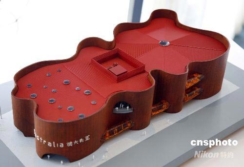 7月3日,澳大利亞政府與上海世博會組織者正式簽署中國2010年上海世博會參展合同。澳大利亞將在上海世博園區(qū)內(nèi)自行建設一座占地面積達4800平方米的國家展館,將向參觀者呈現(xiàn)澳大利亞如何締造城市建設和自然環(huán)境之間可持續(xù)發(fā)展的和諧。中新社發(fā) 潘索菲 攝