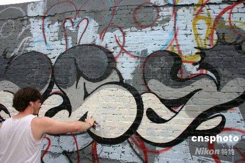 日前,在北京798藝術(shù)院區(qū)南側(cè)部分外墻被一些年輕的藝術(shù)家們裝扮繪制成了奧運文化墻,構(gòu)圖色彩十分醒目,甚是好看。中新社發(fā) 郭海鵬 攝