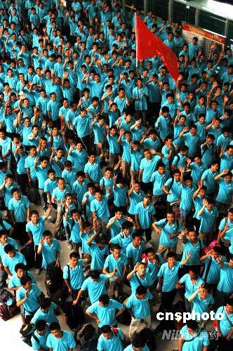 2008年7月11日,來自山東科技職業(yè)學(xué)院的北京奧運(yùn)會(huì)安保志愿者準(zhǔn)備出發(fā),奔赴北京。當(dāng)日,山東科技職業(yè)學(xué)院700多名北京奧運(yùn)會(huì)安保志愿者整裝趕赴北京,準(zhǔn)備從事北京奧運(yùn)會(huì)安保志愿服務(wù)。據(jù)了解,2008北京奧運(yùn)會(huì)期間,山東科技職業(yè)學(xué)院共有3000名大學(xué)生去北京擔(dān)當(dāng)安保志愿者,這些志愿者將分八批在近日內(nèi)抵京。