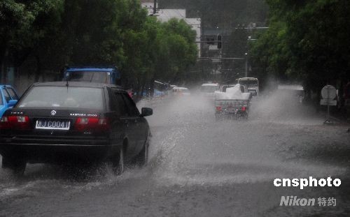 受今年第8號強臺風“鳳凰”的外圍影響,7月28日上午,浙江溫嶺市普降暴雨,局部地區(qū)大暴雨,沿海海面風力9-10級,并逐漸增強到10-11級。短時間的強降雨使部分路段積水,給市民出行造成了不便。中新社發(fā) 吳鵬飛 攝