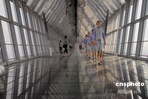 2008年8月28日,上海陸家嘴金融貿易區(qū)超高層綜合大廈“上海環(huán)球金融中心”落成啟用。金融中心樓坐擁101層高492米,在CTBUH(國際高層建筑與城市住宅協(xié)會)2008年公布的高層建筑排行榜的“最高使用樓層高度”和“最高樓頂高度”兩項中位居全球第一。上海環(huán)球金融中心擁有先進的辦公設施,有鳥瞰上海面貌的世界最高的觀光廳(地面高度達474米),能夠為國際性會議等活動提供優(yōu)質服務的多功能會議設施等。上海環(huán)球金融中心頂部的觀光廳于8月30日正式對外開放,之后各類設施將逐步啟用。中新社發(fā) 海牛 攝