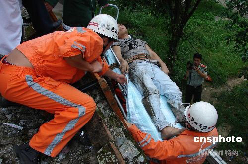 九月九日中午兩點(diǎn)多,廣西欽州市消防官兵在前進(jìn)路兩幢樓房的墻縫中救出一被困者,經(jīng)警方辨認(rèn),這名獲救者正是當(dāng)日凌晨警方在追捕時,在四樓忽然“消失”掉的竊賊。圖為消防官兵將竊賊從二樓抬下地面。 中新社發(fā) 田華松 攝