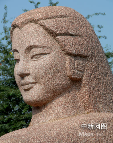 雕塑由甘肅著名的雕塑家何鄂女士創(chuàng)作,北京雕塑廠于1986年4月30日雕成,系一長6米,寬2.2米,高2.6米的花崗巖圓雕,總重40余噸。由“母親”和一“男嬰”組成構圖。