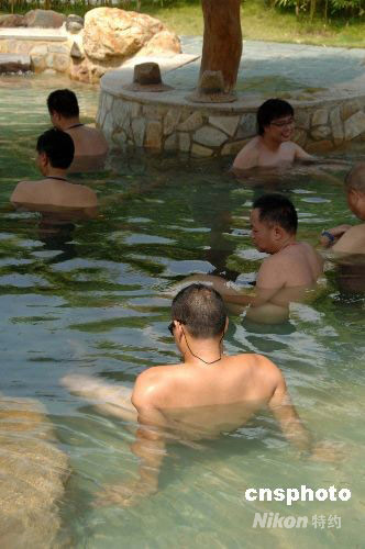 9月21日,廣東森波拉首屆“天體沐浴節(jié)”在一度假森林火山溫泉揭開(kāi)神秘面紗,100多名“歡樂(lè)男女”沐浴在陽(yáng)光、泉水、竹林花香中!疤祗w浴”被當(dāng)作一種回歸自然和享受健康的方式在廣東逐漸被大眾所接受。中新社發(fā) 梁永強(qiáng) 攝
