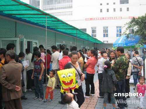 9月21日上午,首都-什邡對(duì)口支援醫(yī)療衛(wèi)生隊(duì)第二次向四川省什邡市人民醫(yī)院增派3名隊(duì)員,至此,該隊(duì)先后兩次共增派7名隊(duì)員支援該院,加上原在該院工作的3名隊(duì)員,共有10名首都醫(yī)療隊(duì)員幫助該院開(kāi)展食用“問(wèn)題奶粉”的兒童篩查工作。 中新社發(fā) 張正尤 攝