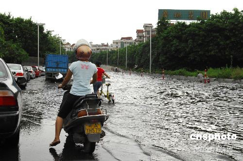 第14號(hào)強(qiáng)臺(tái)風(fēng)“黑格比”9月24日清晨6點(diǎn)45分在廣東省電白縣陳村鎮(zhèn)海面登陸。省會(huì)廣州受臺(tái)風(fēng)影響出現(xiàn)大風(fēng)暴雨,行人出行受阻。中新社發(fā) 侯宇 攝
