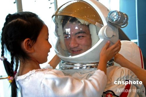 9月23日,“中國(guó)航天員體驗(yàn)營(yíng)”啟動(dòng)儀式在北京天文館舉行。這場(chǎng)旨在拉近航天科技與普通大眾距離的航天體驗(yàn)活動(dòng)拉開序幕,給翹首企盼“神七”太空漫步的“航天熱”錦上添花,普通公眾也有了一個(gè)當(dāng)“航天員”的機(jī)會(huì)。中新社發(fā) 胡慶明 攝