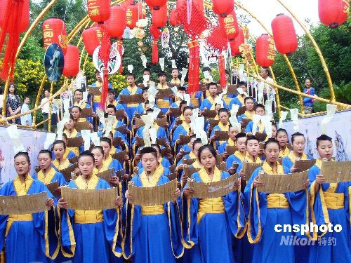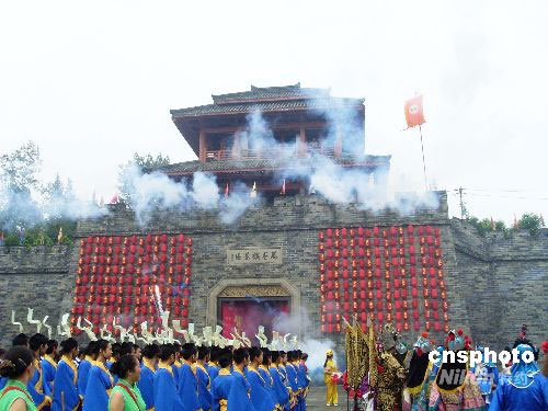 2008年9月27日,四川•南充第二屆三國(guó)文化節(jié)在南充萬(wàn)卷樓景區(qū)隆重開(kāi)幕。三國(guó)文化節(jié)以豐富多彩的文化活動(dòng),充分展示南充“三國(guó)文化之源”的深厚內(nèi)涵與璀璨的文化特色。中新社發(fā) 陳宏 攝